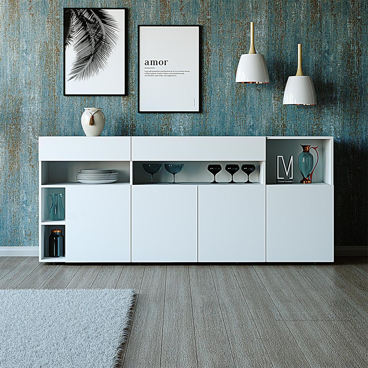 Vajillero Moderno Aparador, nueva línea, mayor diseño y confort. En este caso se trata de una excelente vajillero con 5 estantes movibles de los cuales 4 son internos y 1 externo + 3 alturas regulables en cada estante con una gran capacidad de guardado. Incluyen correderas metálicas para su mejor deslizamiento.