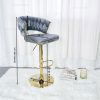 Su asiento acolchado con esponja de alta densidad y tapizado en terciopelo te garantiza un confort superior. La base de metal dorado no solo le da estabilidad, sino que también protege tus pisos gracias a su contorno de PVC.