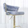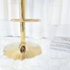 – MATERIALES: Tapizado en tela de terciopelo / Asiento con esponja de alta densidad / Base de metal dorado.
