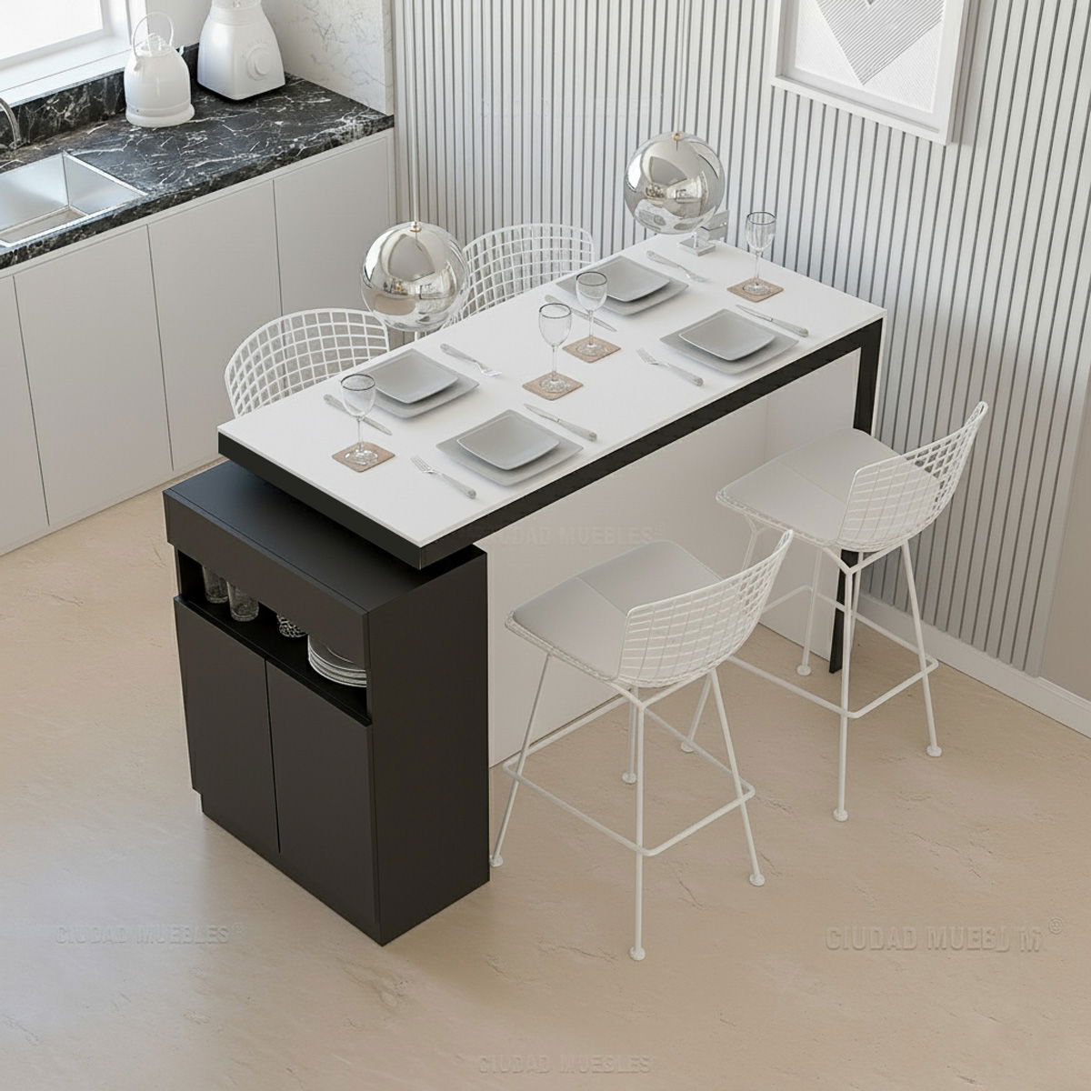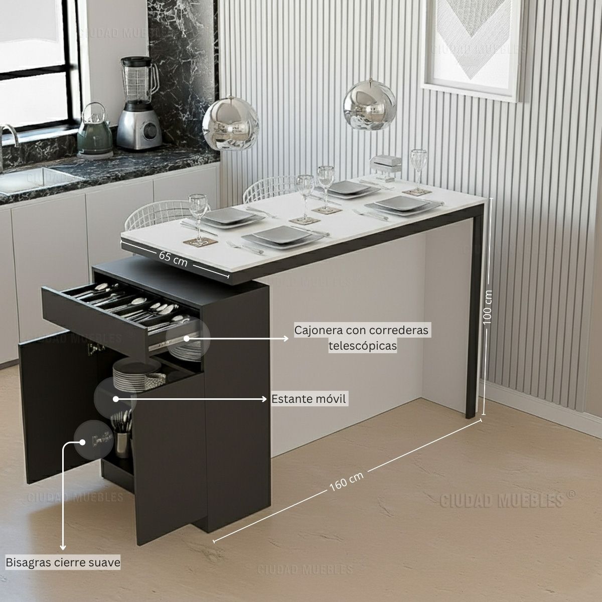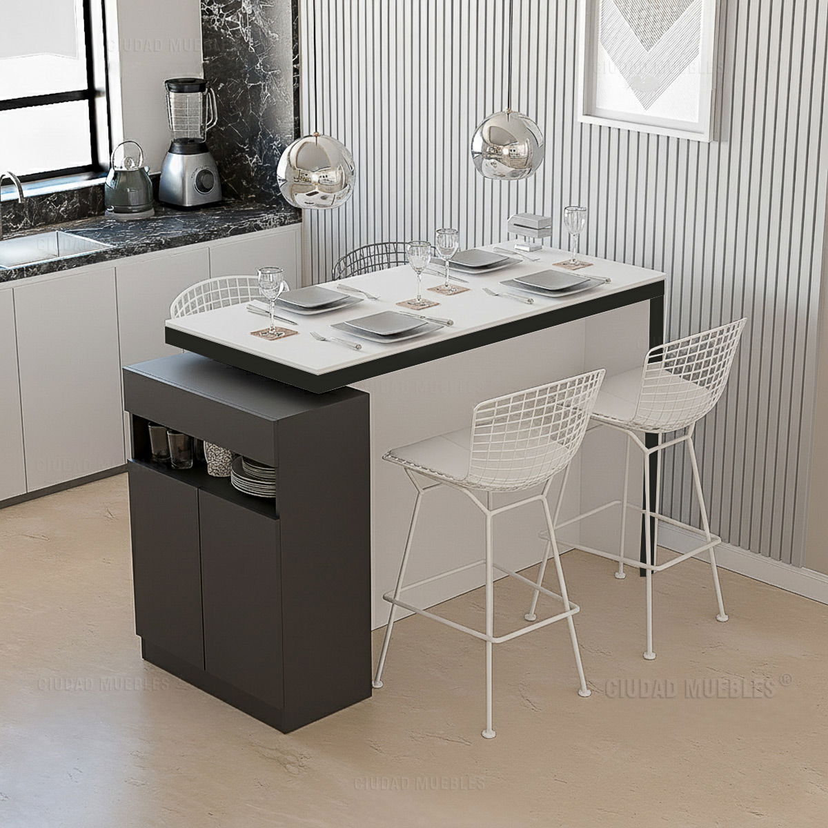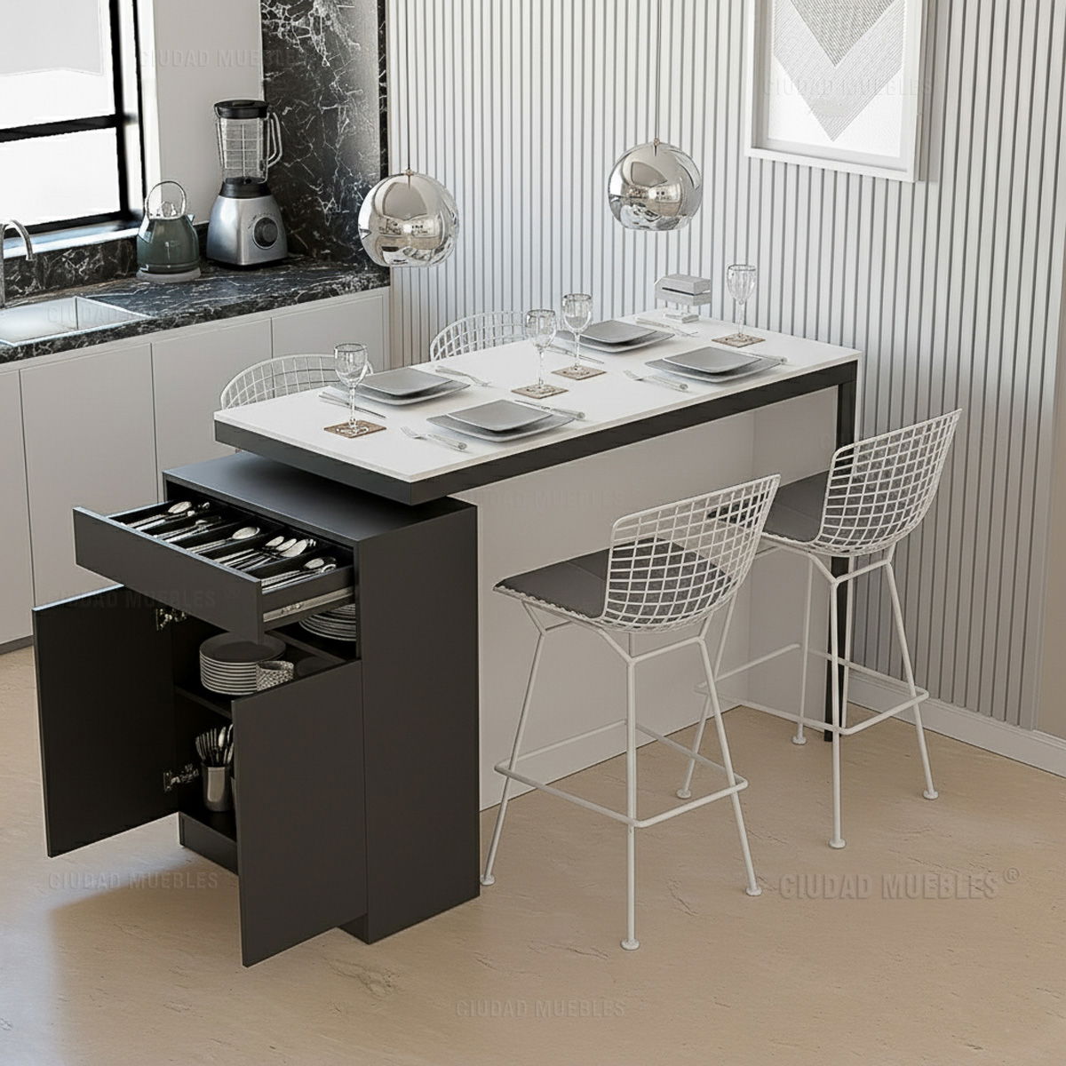 MESA BARRA DESAYUNADOR PARA 4 PERSONAS CON CAJÓN Y PUERTAS
