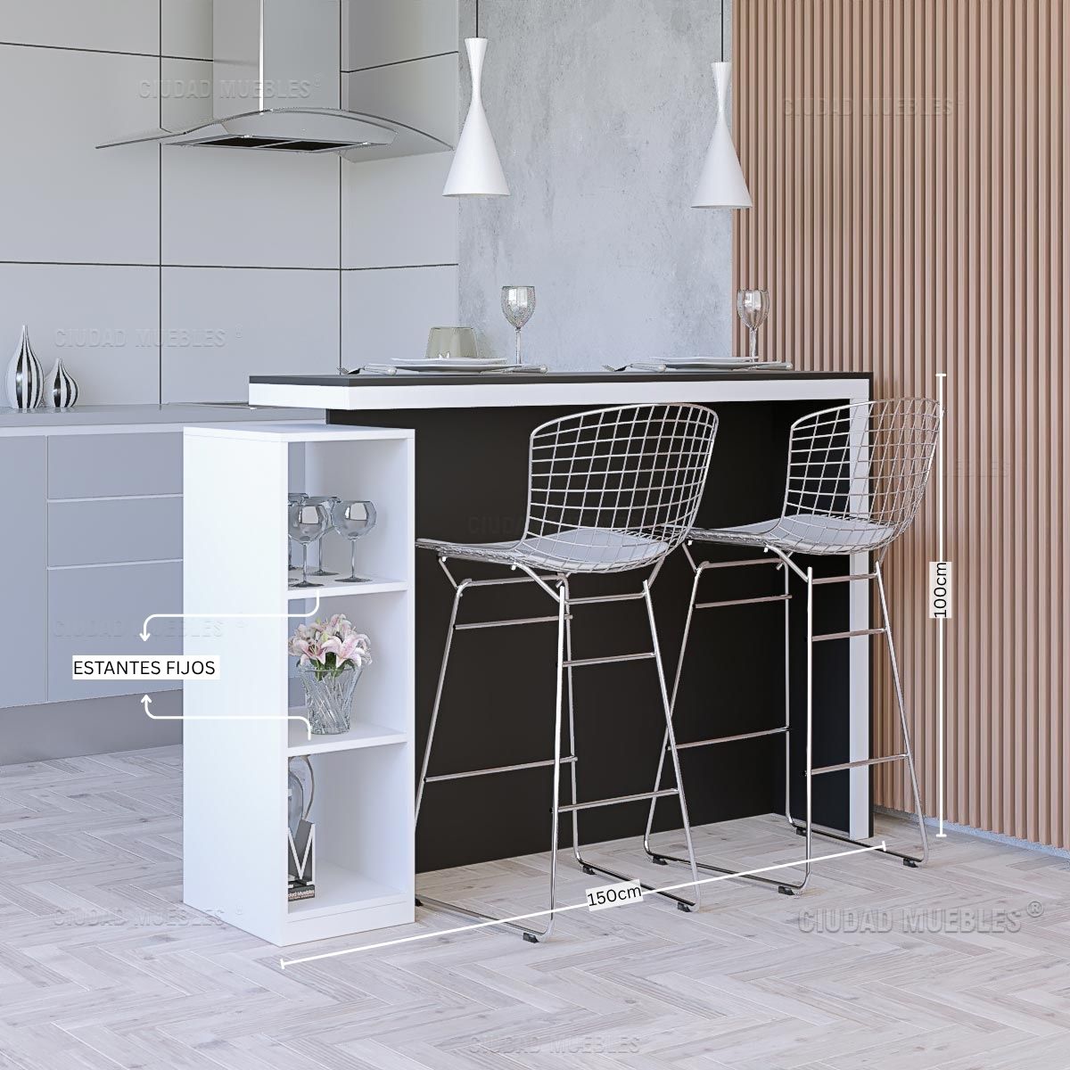 Barra Desayunador de Cocina 2 Personas 150×37 Cm Negro y Blanco