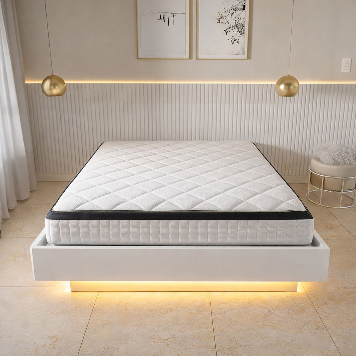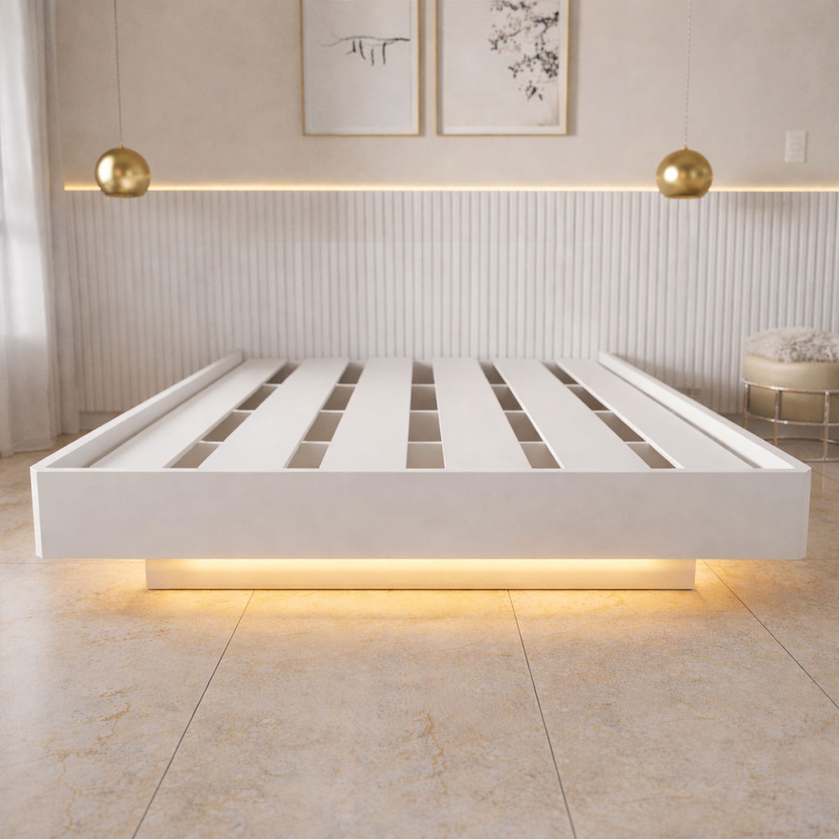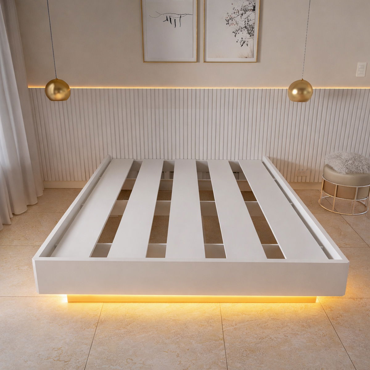 Elevá tu dormitorio con la Base de Sommier Halo Premium 140×190. Máxima firmeza en melamina de 25 mm, bordes biselados antigolpes y un diseño flotante único. Sumá el Kit LED.