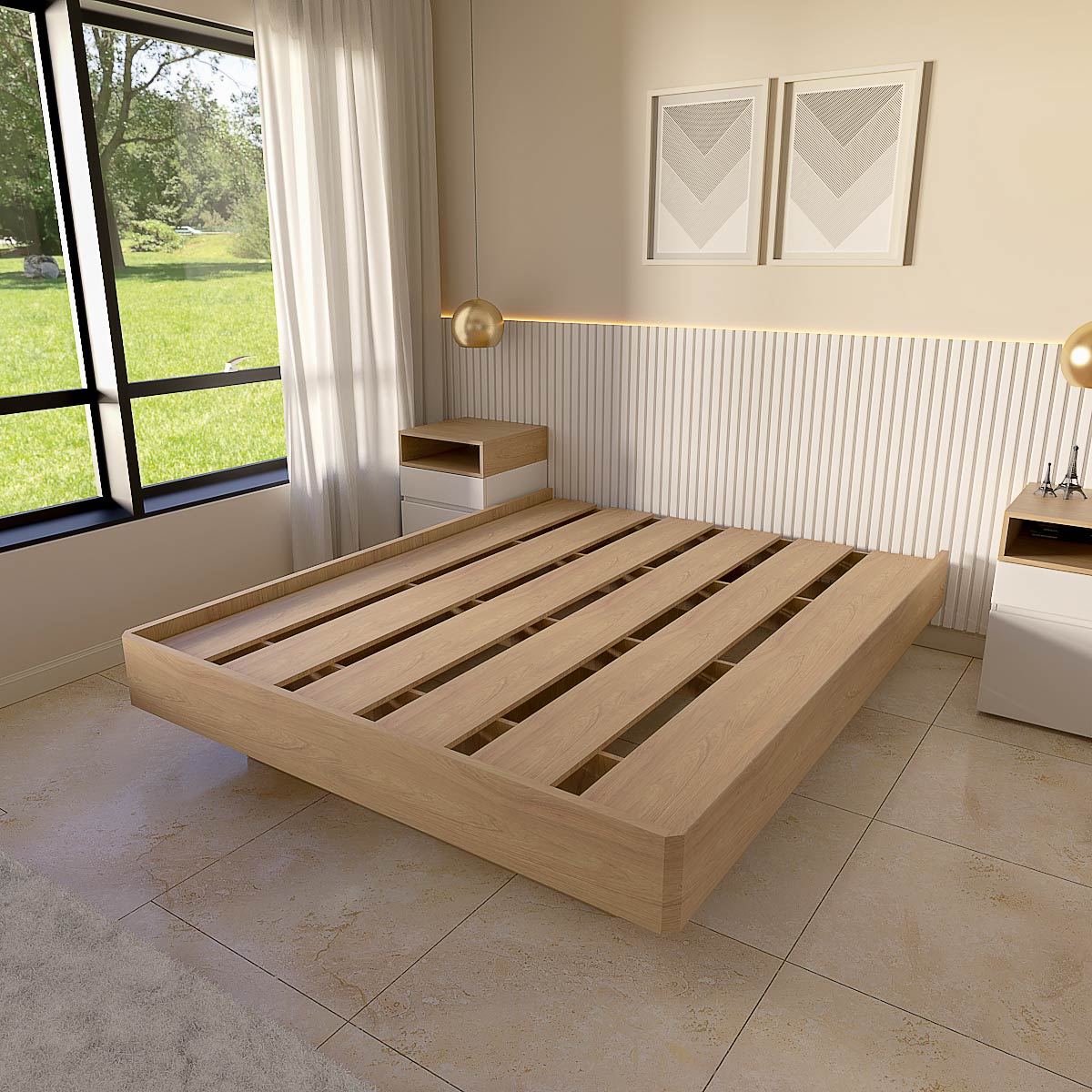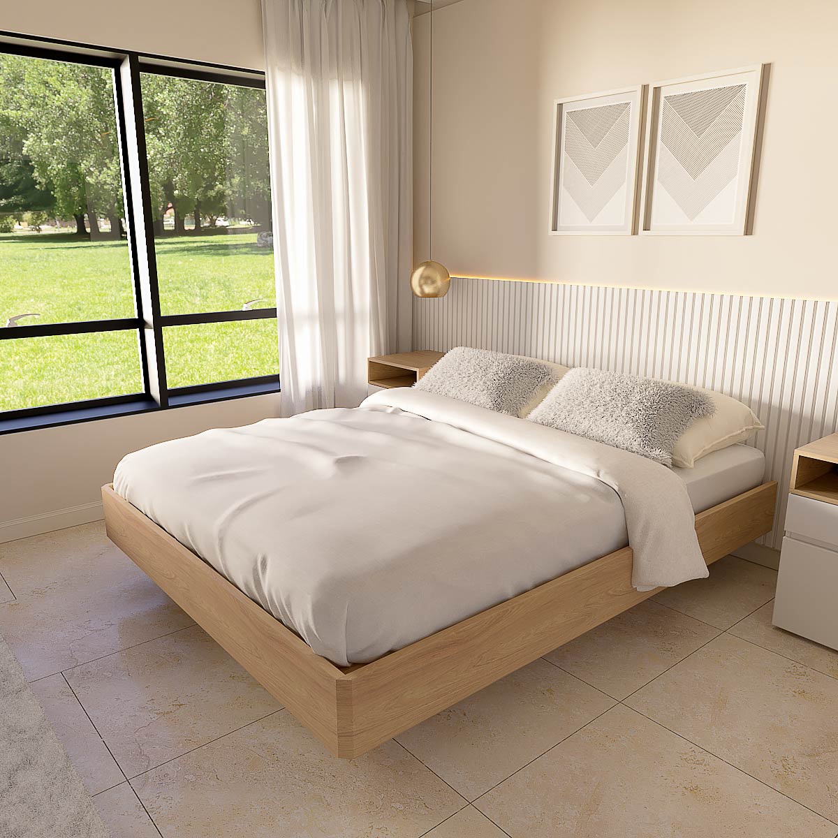 Elevá tu dormitorio con la Base de Sommier Halo Premium 140×190. Máxima firmeza en melamina de 25 mm, bordes biselados antigolpes y un diseño flotante único. Sumá el Kit LED.