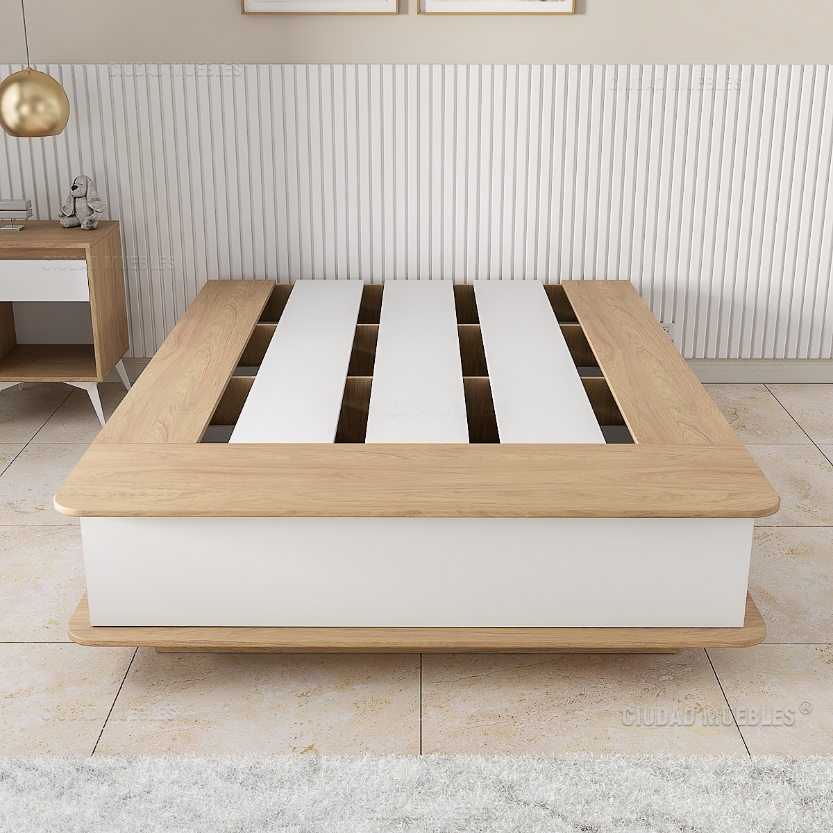 Gracias a su estructura interna reforzada, ofrece una base sólida y confiable, ideal para combinar con respaldos (especialmente los de guardado) y mesas de luz, logrando un dormitorio completo, funcional y estéticamente impecable.
