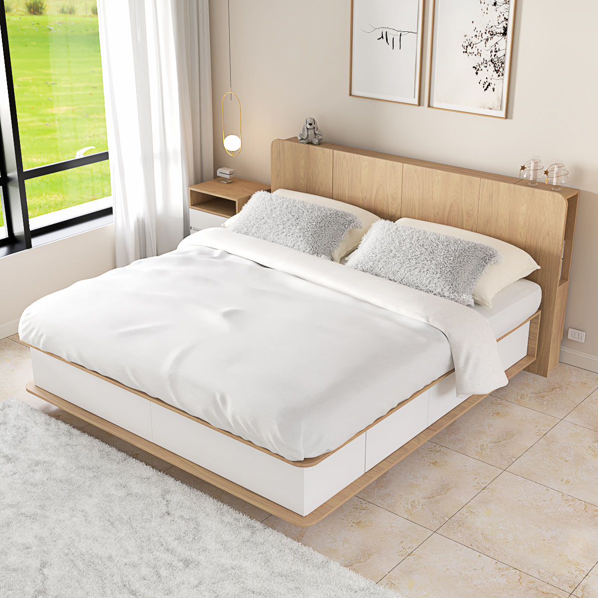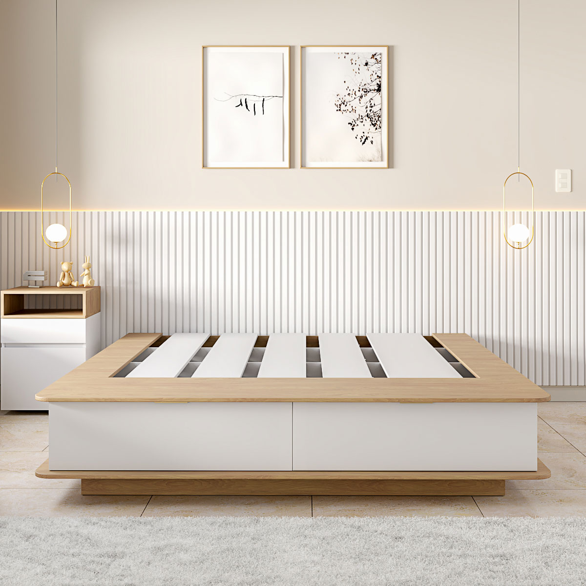 Es la base ideal para combinar con respaldos y mesas de luz, creando un dormitorio funcional, ordenado y con estilo.