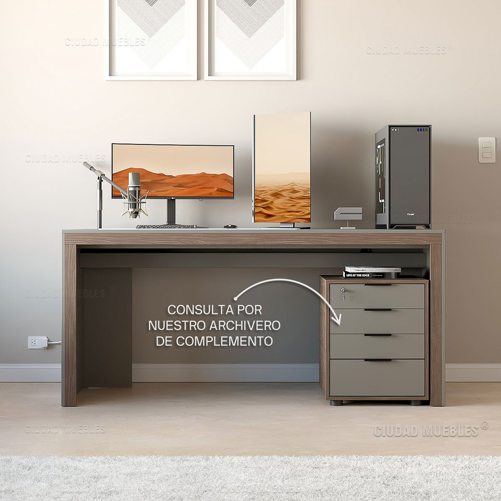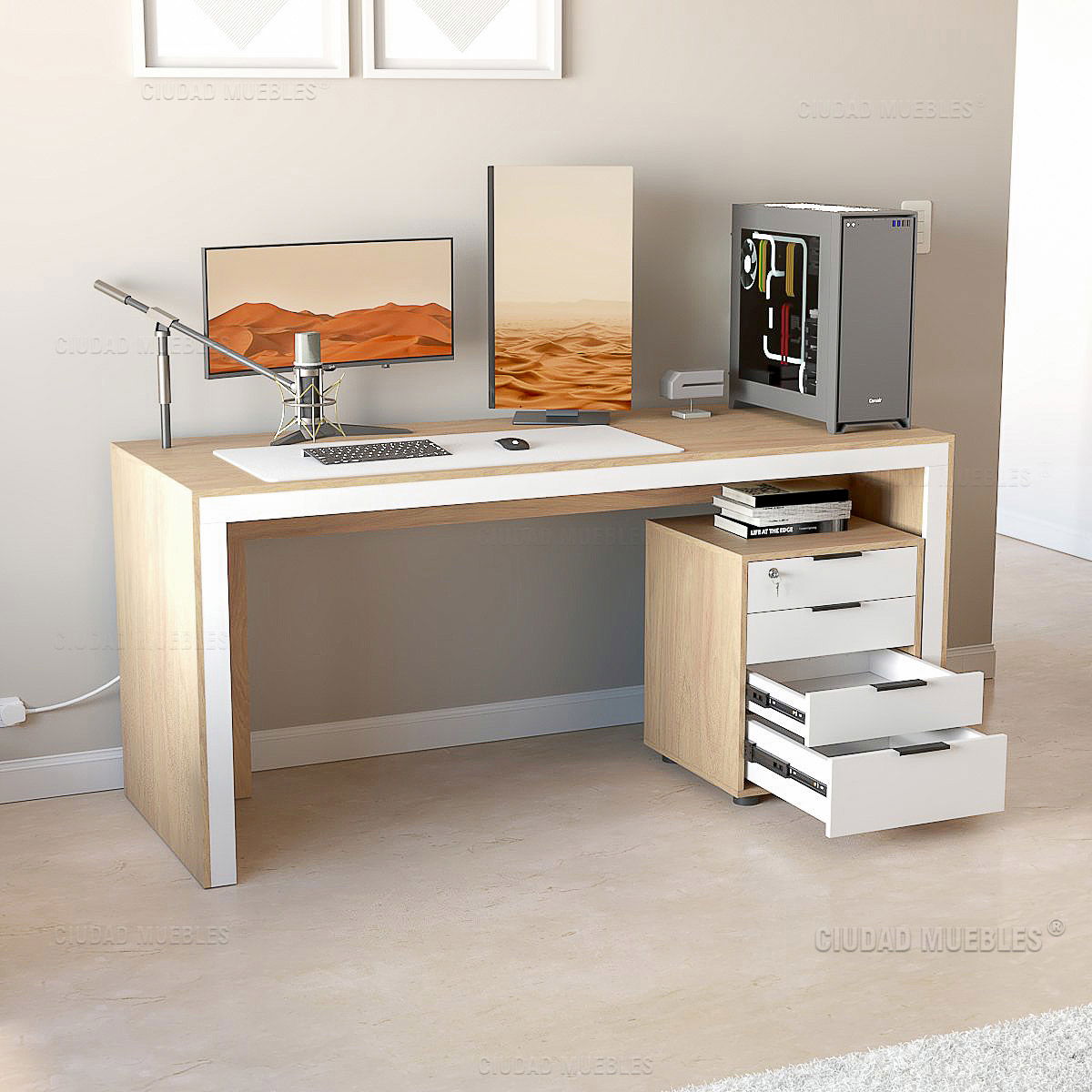 La dupla perfecta para tu oficina o home office está acá. Este combo une un amplio escritorio de 170 cm con un práctico archivero de 4 cajones para darte un espacio de trabajo súper funcional y con estilo.