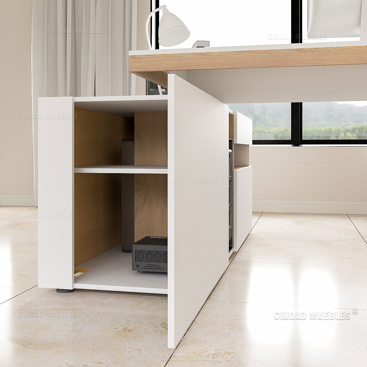 – SOLUCIÓN INTEGRAL DE ORGANIZACIÓN: Disfrutá de un espacio de trabajo ordenado gracias al archivero lateral con múltiples opciones de almacenamiento: cajón, estante abierto, espacio específico para la CPU y compartimentos cerrados.