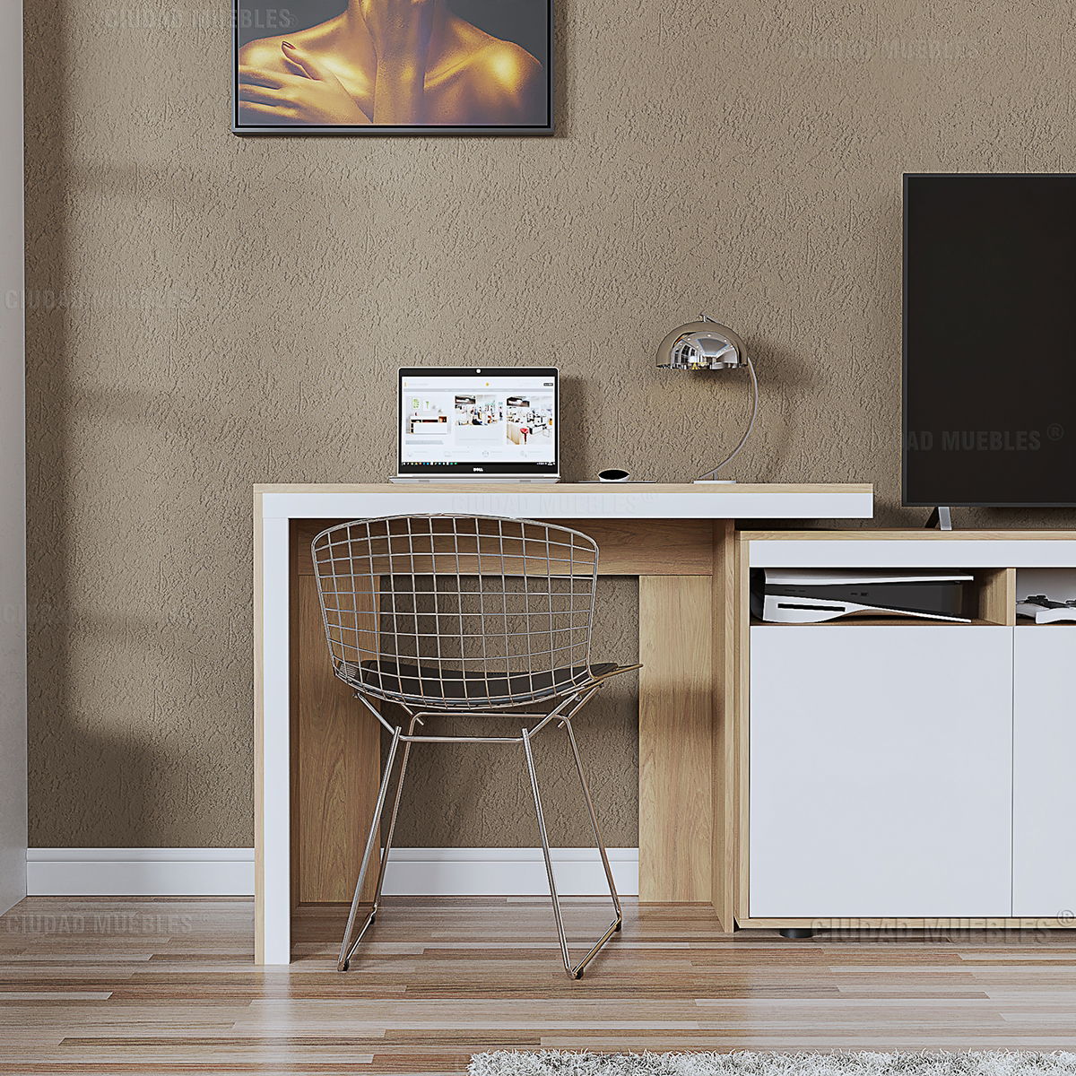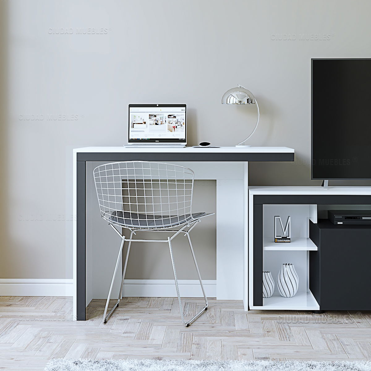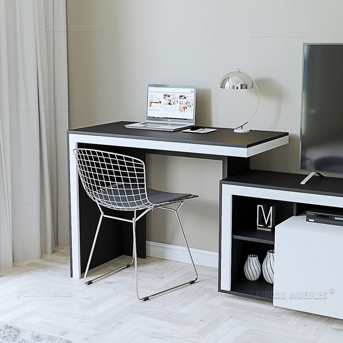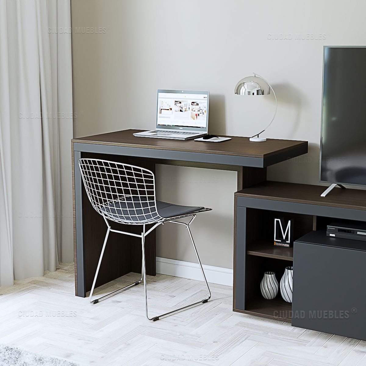 El Escritorio Complemento para Adosar te permite crear un área de trabajo integrada al mueble de TV o modular, sin perder estilo ni comodidad.