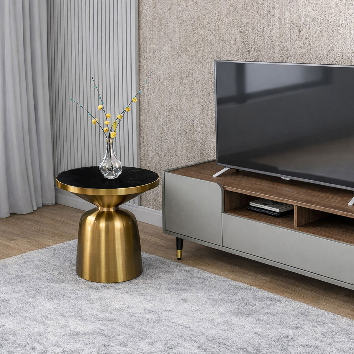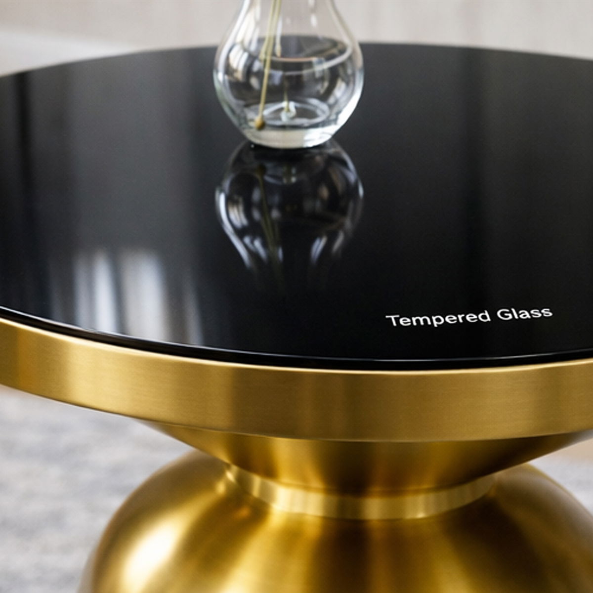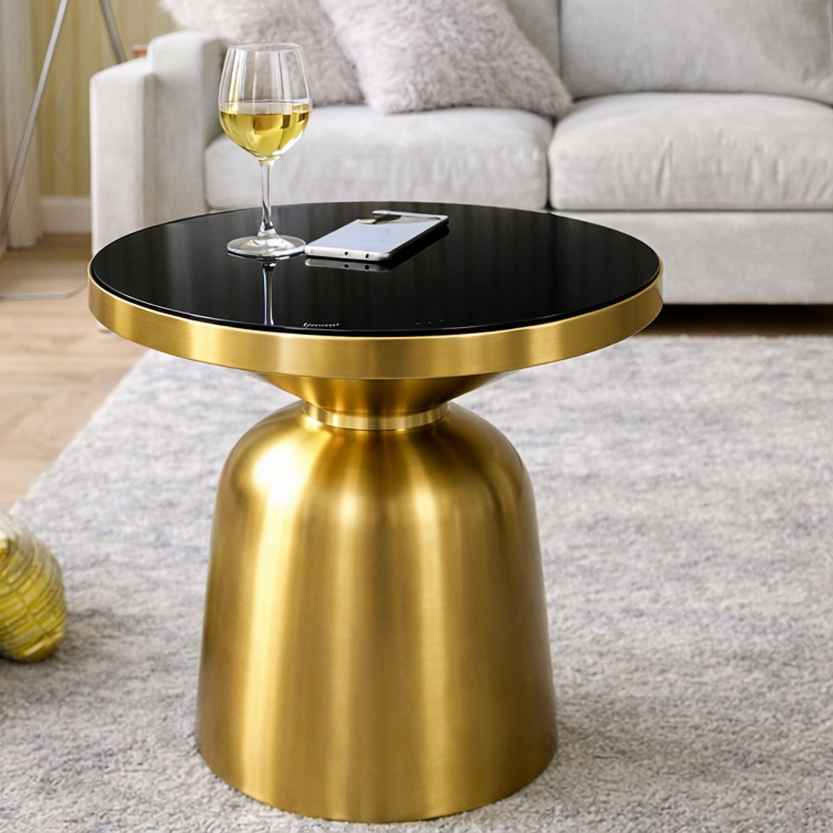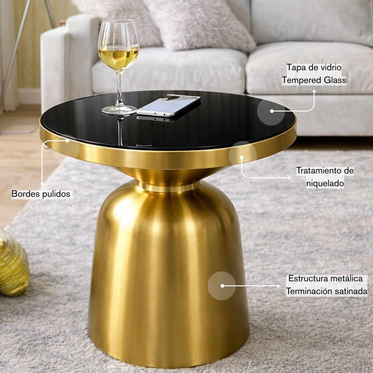 La Mesa Auxiliar Dorada con Tapa de Vidrio Templado es una pieza de diseño pensada para sumar elegancia y funcionalidad a la sala de estar. Ideal como mesa de café para interior, combina una estética artística con materiales resistentes y terminaciones cuidadas.