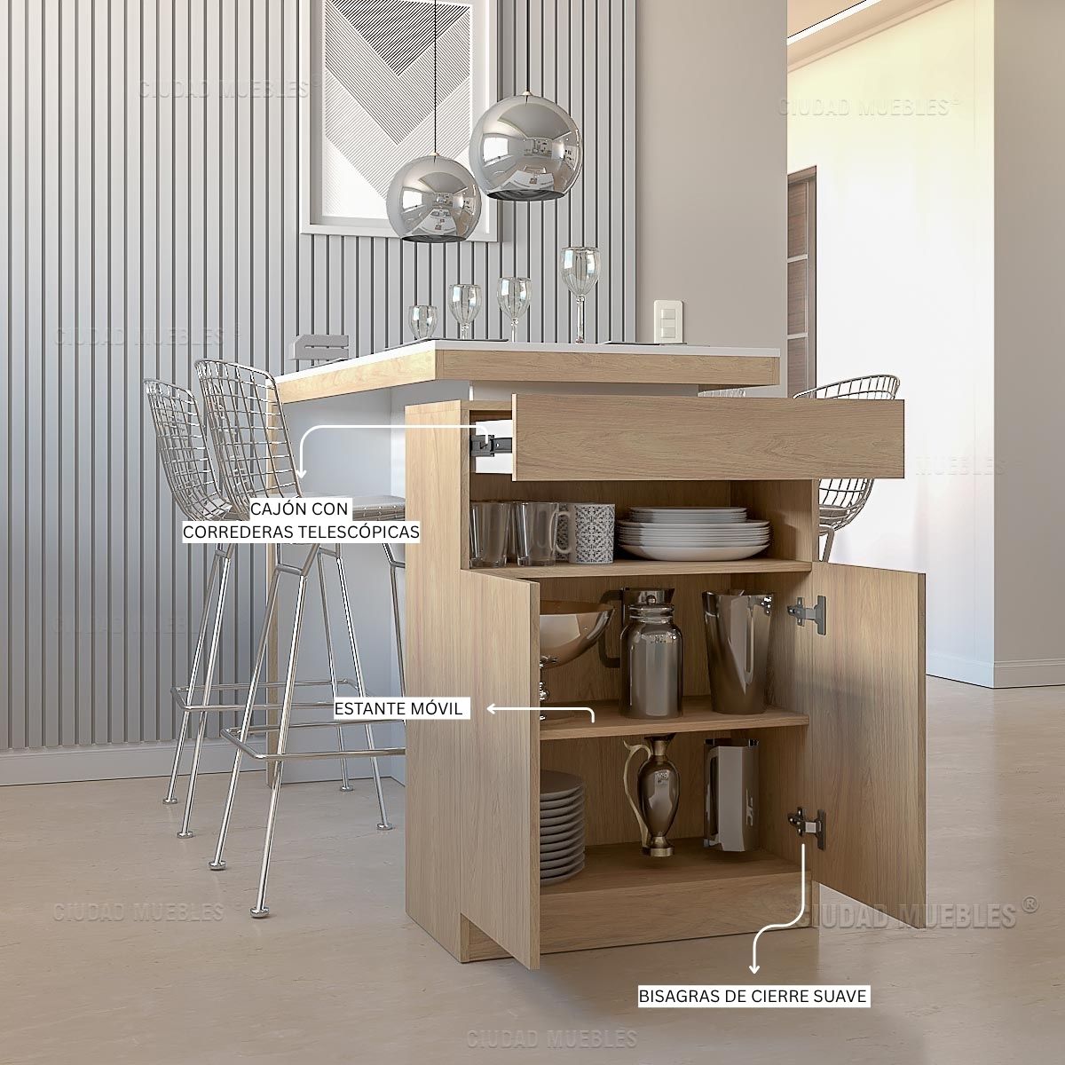 MESA BARRA DESAYUNADOR PARA 4 PERSONAS CON CAJÓN Y PUERTAS