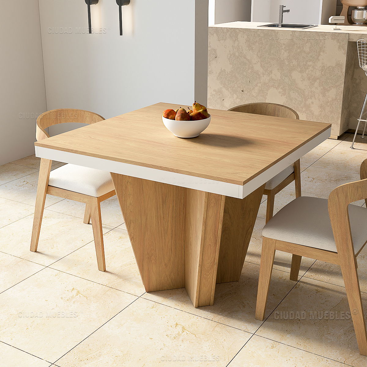 Mesa cuadrada estrella de comedor 4 personas de 100x100x78cm Natural Blanco