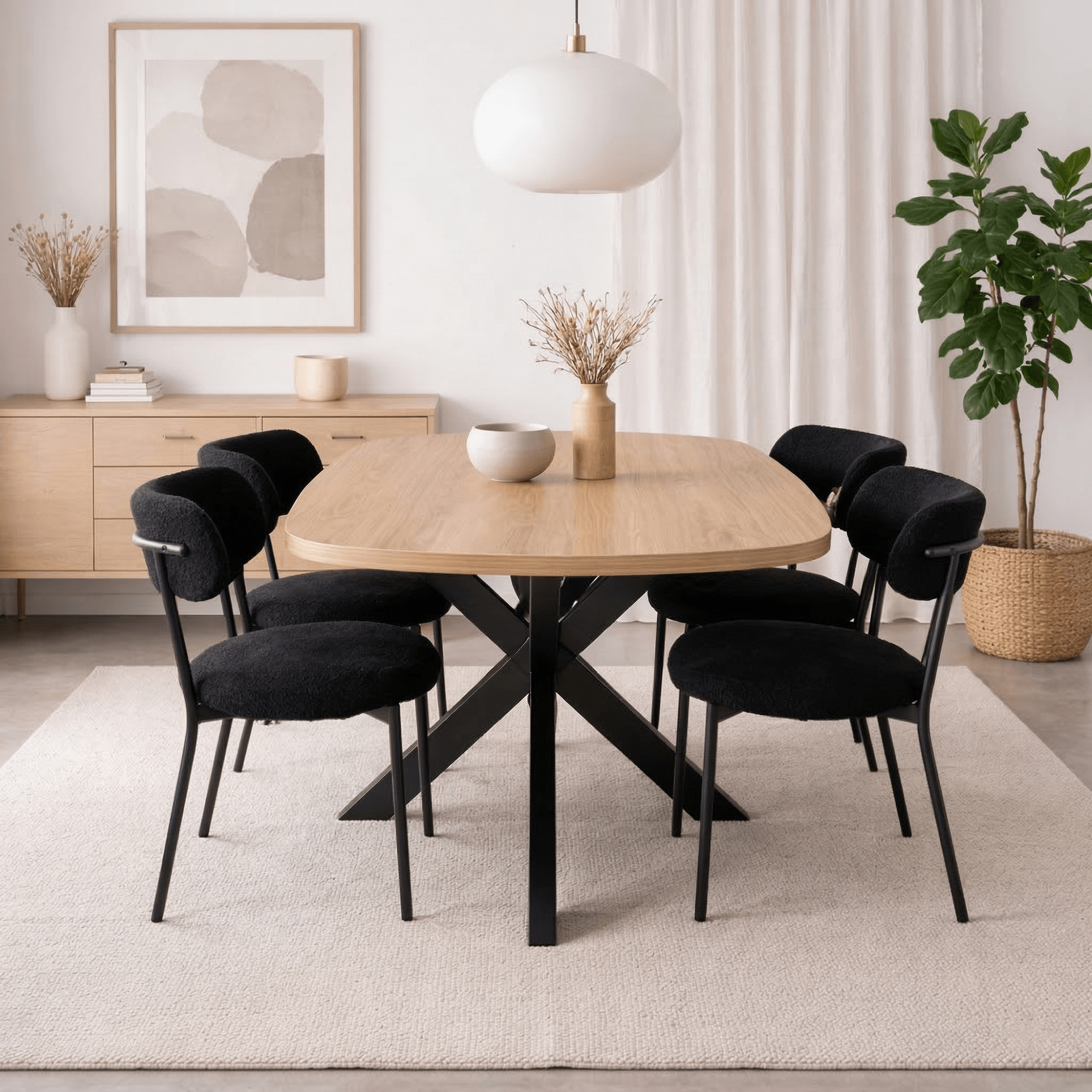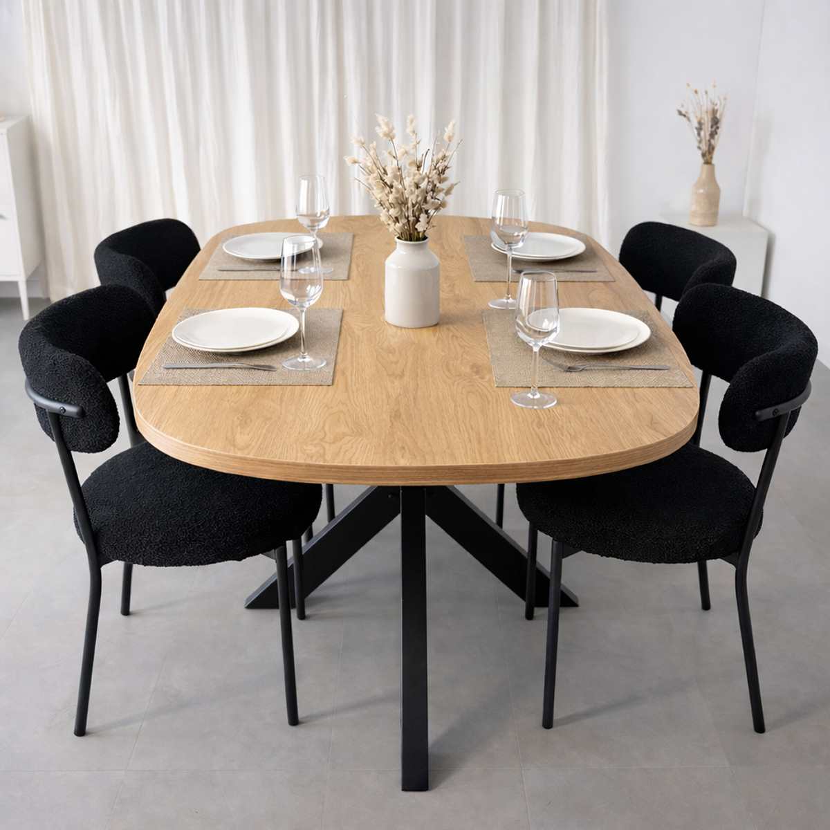 La Mesa Ovalada Alba redefine tu comedor con un diseño de forma ovalada y estética moderna. Su tapa robusta de 25 mm combina calidez con una resistencia superior.