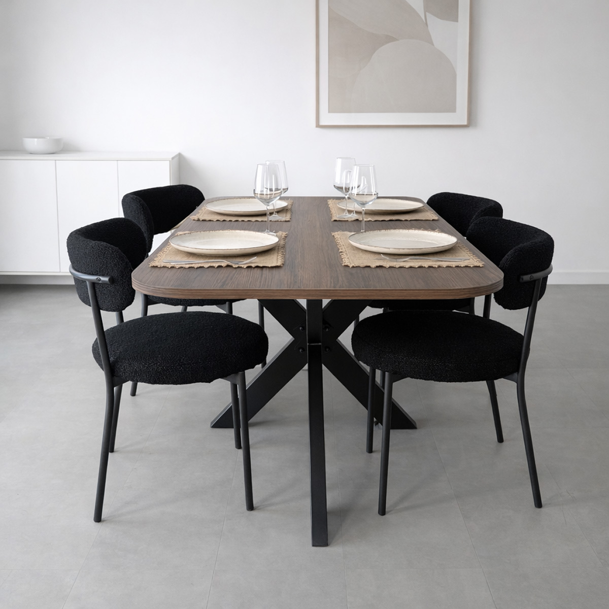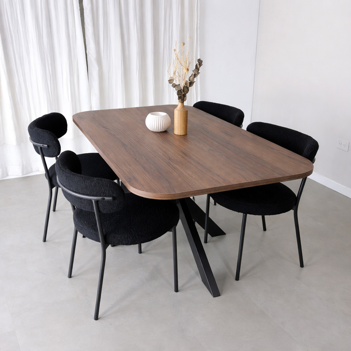 La Mesa Rectangular Aura redefine tu comedor con un diseño de bordes curvos y estética moderna. Su tapa robusta de 25 mm combina calidez con una resistencia superior.