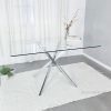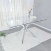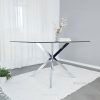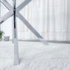 La verdadera joya de esta mesa es su base de metal cromado con acabado espejo. Su estructura en forma de estrella no solo garantiza un soporte sólido, sino que se convierte en una escultura de gran impacto visual.