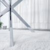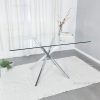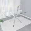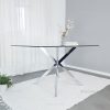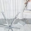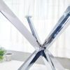 Esta mesa destaca por su base de metal cromado en forma de estrella con acabado espejo, que combina un soporte sólido con un diseño artístico de gran impacto visual.