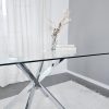 - Materiales: Tapa de vidrio templado (10 mm) y base de metal cromado.