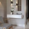 El Recibidor flotante con cajón oculto y cerradura es un mueble minimalista y versátil que combina diseño, funcionalidad y seguridad. Su formato flotante aporta ligereza visual y ayuda a optimizar el espacio, elevando la estética de la entrada del hogar.
