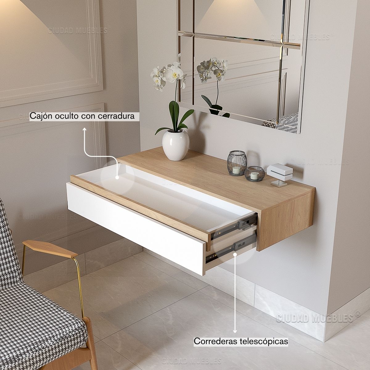 Recibidor Flotante Con Cajón Oculto Con Cerradura