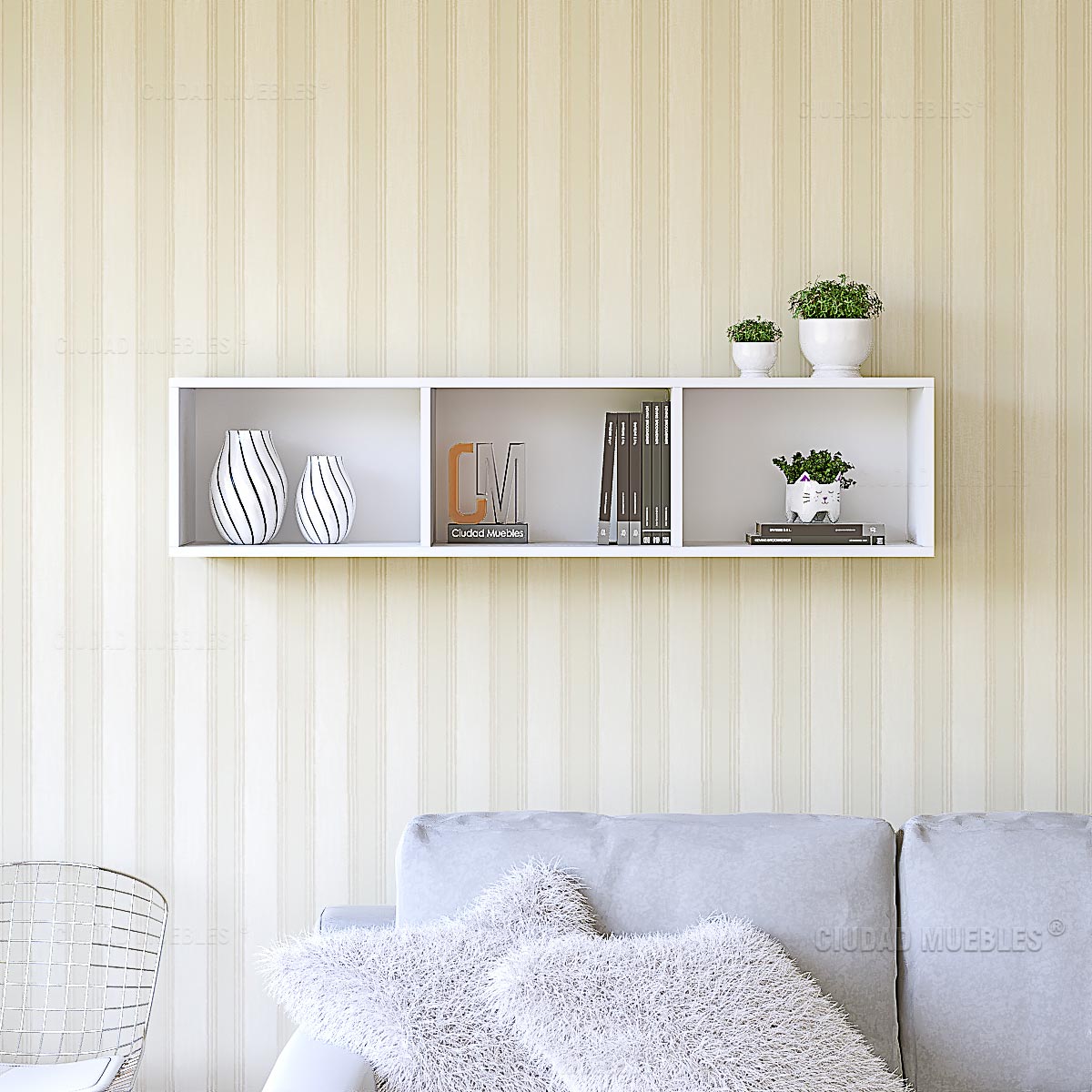Repisa Modular Flotante 120Cm. Ciudad Muebles presenta un nuevo modelo de estante abierto con tres sectores de guardado. El mueble se entrega con un sistema de escuadritas metálicas, incorporadas en el fondo del mueble, para ser colocadas y amurada en la pared. Estas escuadritas se ajustan mediante tornillos y tarugos, acordes al tipo de pared donde ira colocado.