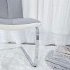 – TAPIZADO HÍBRIDO: Combina la textura del chenille gris con la elegancia del ecocuero blanco.